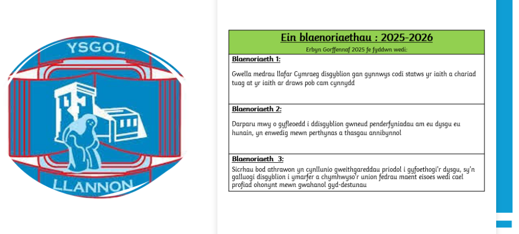 Cynllun Datblygu Ysgol Llannon – Blaenoriaethau